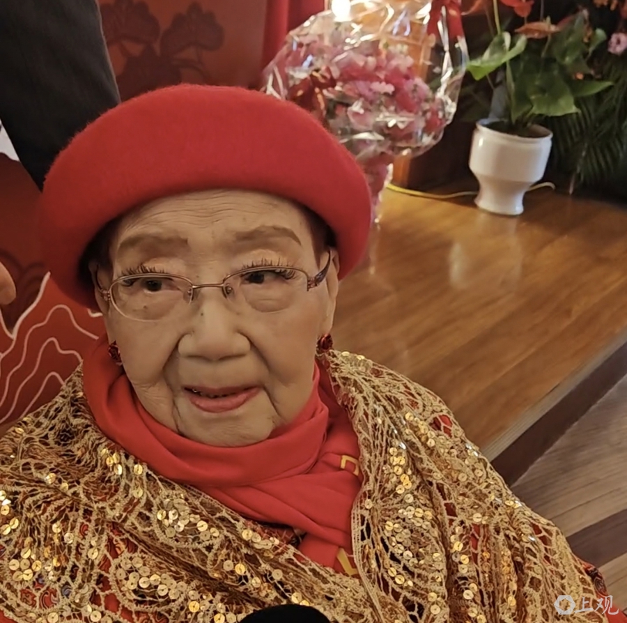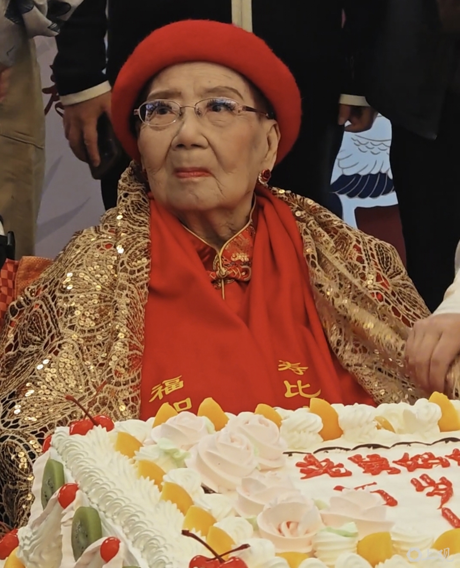 仪式现场温情涌动,民盟代表献花行贺寿礼,致敬艺术前辈;百岁高龄的嫩娘精神矍铄登台,亲手切寿糕,以温暖而富有力量的话语致谢众人关怀,整场仪式满溢温馨与敬意。